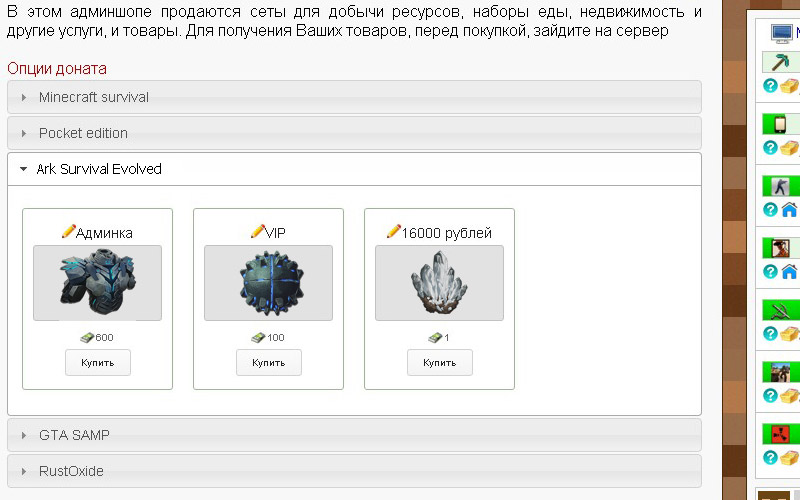 Sell resources on your servers ARK Survival Evolved through a regular ARK: Server API and to him already Extended RCON, which adds RCON commands to retrieve resources players.