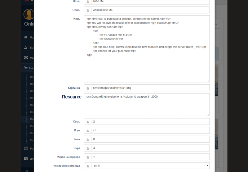 Donate to the server MTA, when you buy in the store sends it to the server resources, play money, to replenish health or armor. With the help of donate engine, the servers will be able to sell as individual resources, weapons, and donate privileges, membership in clans and leaders in donate groups.