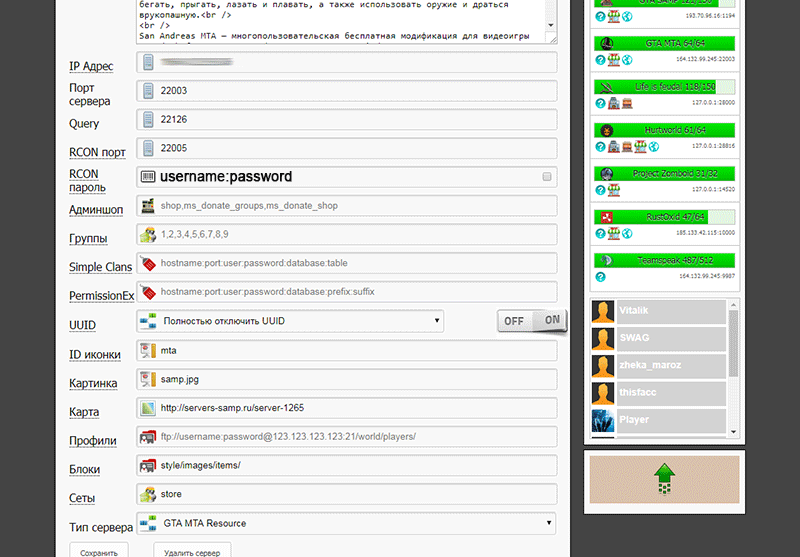 Before connecting donation open the ports on the game server in the firewall. Next, check the Resource protocol on the GTA MTA San Andreas server via the online console.