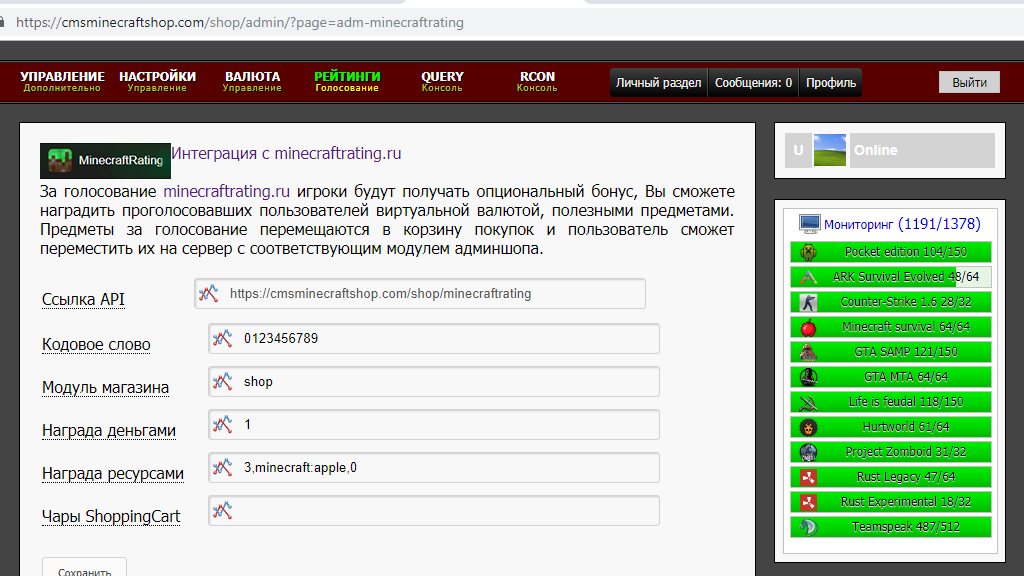 Integration with the service of voting Minecraftrating.ru will allow to receive additional and thus thematic traffic to your site. Monitoring provides a huge opportunity to attract new players!