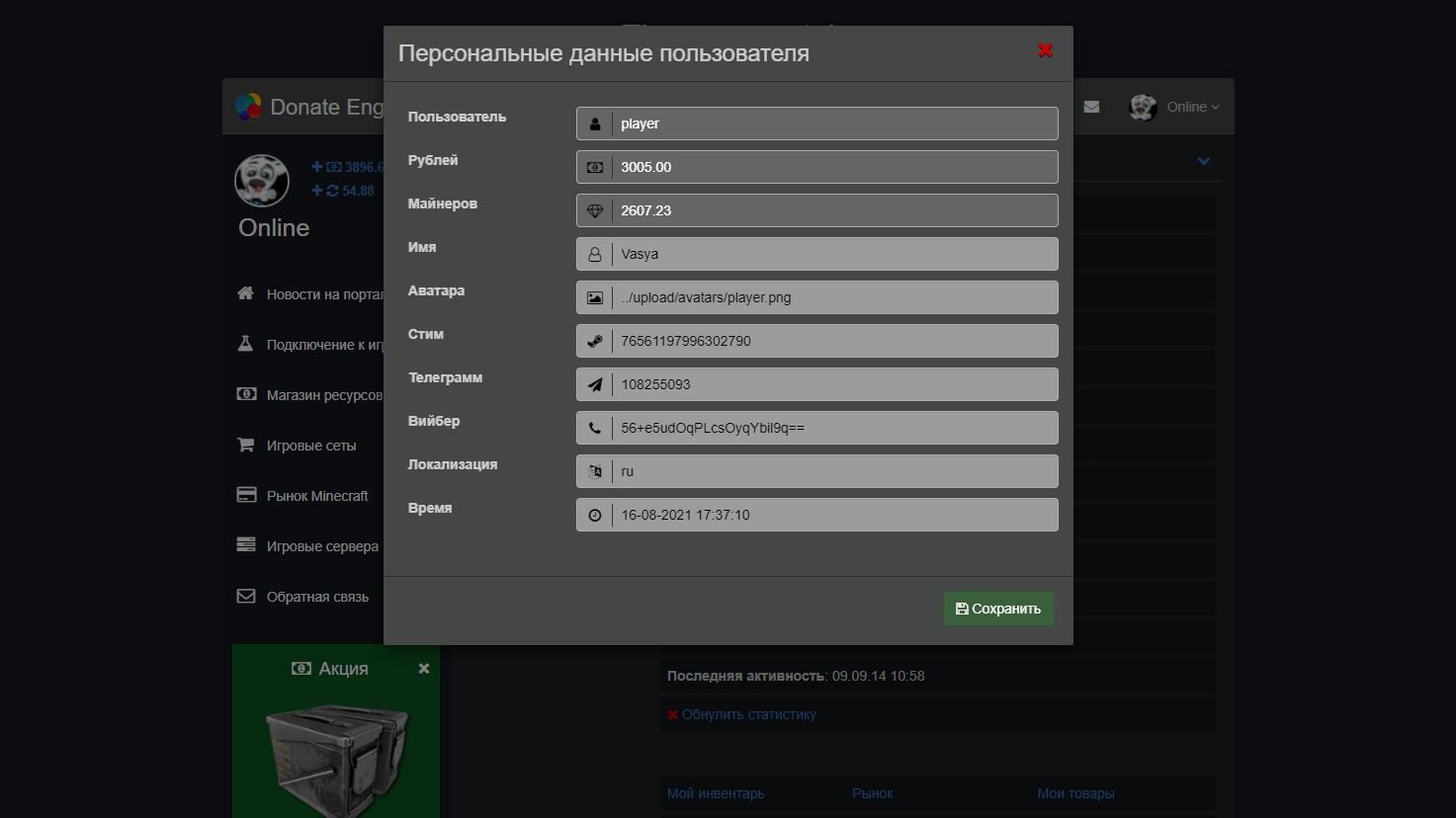 Also, an improvement was added to the admin panel and the error of saving user sessions was fixed. Editing has been added to the user's profile. Correction of an error in the banlist and Life is Feudal modules.