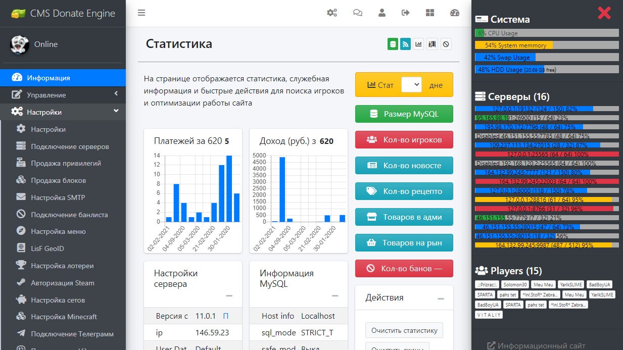 Added a new dark template. The donation module has been updated. Improved caching system, sending via SMTP server and to the discord server. Added support for PHP 8.