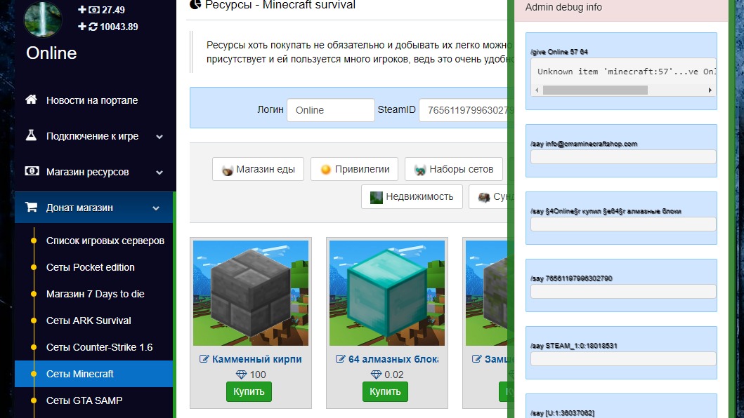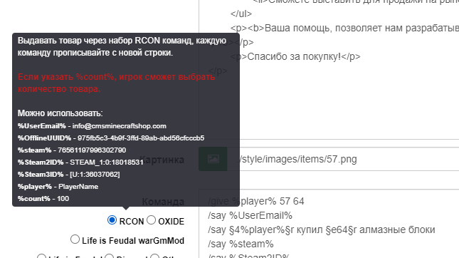 The module for selling sets of products (store) has added support for new variables: %UserEmail%, %OfflineUUID%, %Steam2ID%, %Steam3ID%. Fixed a bug with the Query protocol from the previous update.