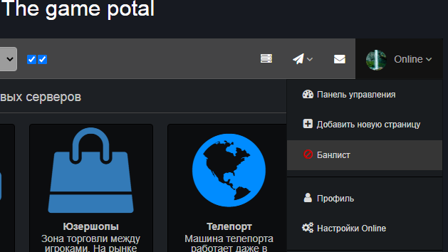 The online ban is placed in a separate modal window called through the menu. Fixing a JavaScript error when working with Minecraft inventory.