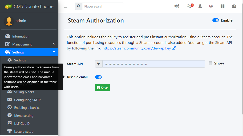 In the steam authorization setting, an option has been added to disable email input and confirmation via mail. A fix to support PHP 8.1.1.