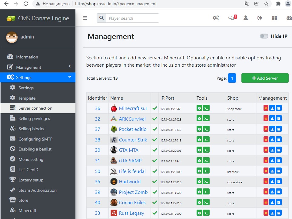 The function of exporting the server with products for the installer has been added to the admin panel.