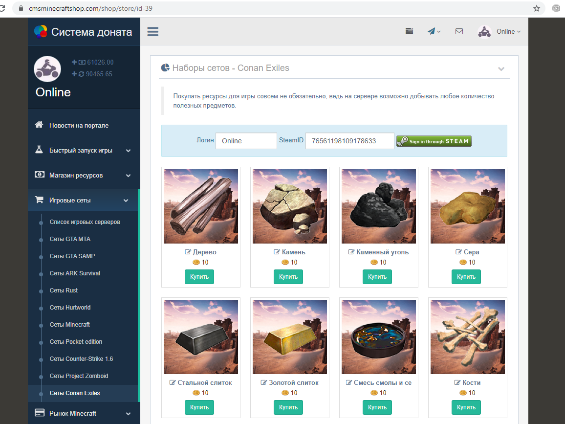 Added Donat support for Conan Exiles game servers. In the store module, when selling resources, the listplayers command is called and the idx is calculated by steamID without plugins. Fix in the jquery.cookies.js library.