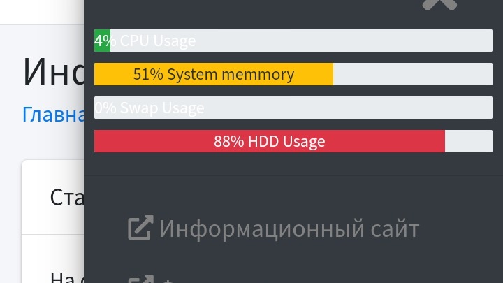 Added a panel with indicators of CPU usage, RAM usage, paging file, and system disk usage.