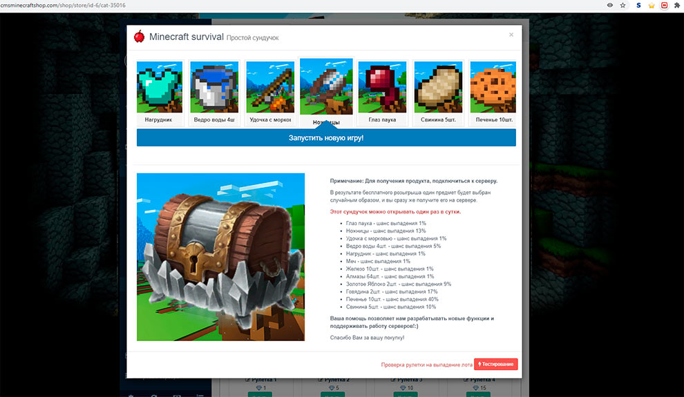New functionality for drawing items through a roulette quiz has been added to the sets module. Dumps with new items have been added to the installer. The dump for ARK Survival servers has been completely updated. Added new images for ARK products.