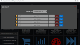 The online ban is placed in a separate modal window called through the menu. Fixing a JavaScript error when working with Minecraft inventory.