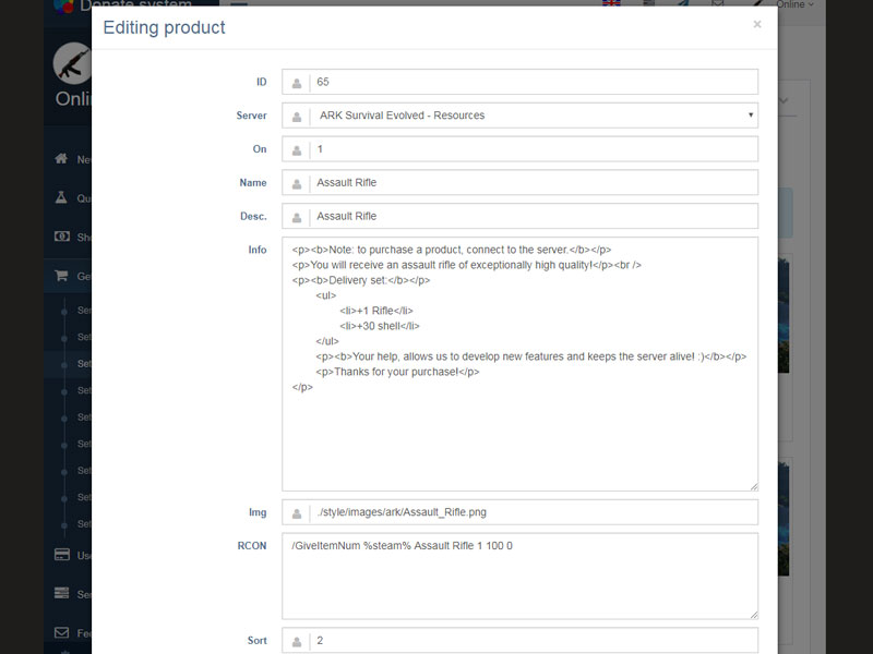 By installing the system Donata users will be able to buy game resources on the servers automatically without moderation and issue purchases. The automatic system will do everything for you CMS Donate Engine!