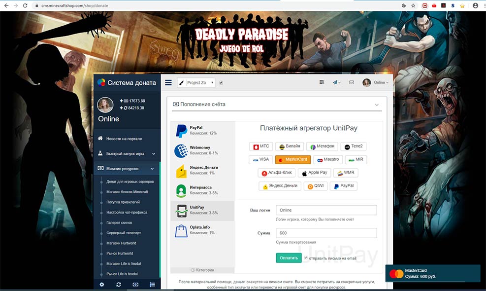 The Unitpay provides the ability to buy virtual currency on the game servers in automatic mode.