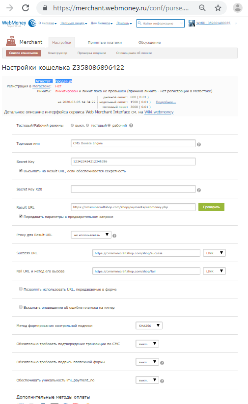 To make money Webmoney Elektonnye on your site through CMS Donate Engine, go to the admin panel, list the options for integration with the service Webmoney Merchant. The site Webmoney Merchant, select the appropriate option, and players will receive an automatic interface to recharge.