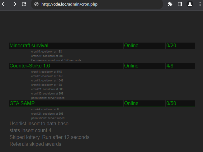 Исправлена ошибка в работе сохранения статистики (steamID64). Обновлена библиотека jQuery. Рефакторинг планировщика задач. Исправлена ошибка вывода информации об сервере. Обновлены дампы для ARK и ProjectZomboid.